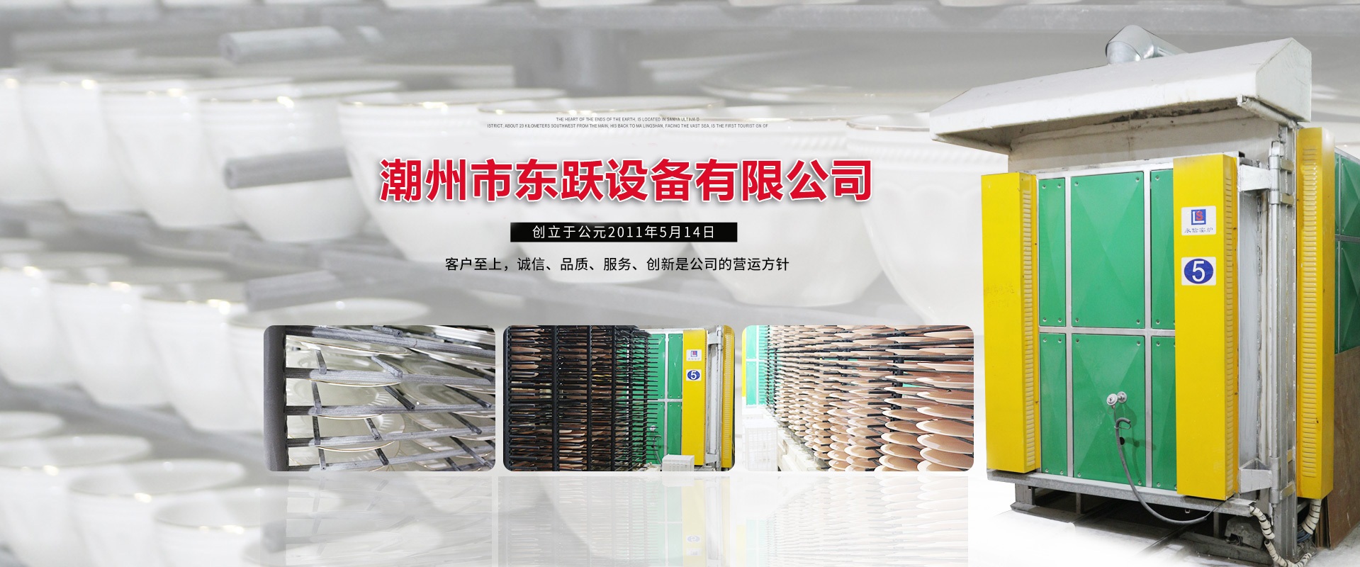潮州市東躍設(shè)備有限公司,創(chuàng)立于公元2011年5月14日,經(jīng)過進(jìn)十年的努力,已發(fā)展成一家擁有集研發(fā)、設(shè)計、加工制造、安裝、調(diào)試與售后一體化的窯爐公司。設(shè)計理念:1.能耗低2.耐用(制造過程采用標(biāo)準(zhǔn)流水線作業(yè),質(zhì)檢嚴(yán)格)3.操作簡單 易學(xué)易用(可以零基礎(chǔ)上崗應(yīng)用)4.重復(fù)率高達(dá)99.8%(燒成可靠性高 穩(wěn)定性強(qiáng))   現(xiàn)有設(shè)計人員10名,加工制造和安裝人員約100人,調(diào)試人員10人,售后服務(wù)人員10人,公司總?cè)藬?shù)約200人。公司本著以人為本的發(fā)展策略,不斷網(wǎng)絡(luò)人才,發(fā)展自動化窯爐技術(shù)。
